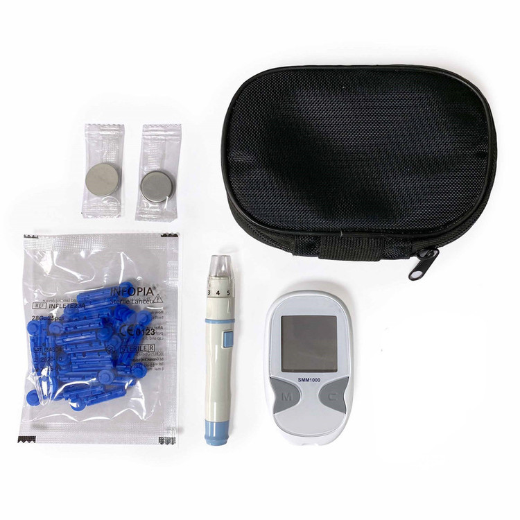 دستگاه تست قند خون دیابان مدل SMM 1000 ساخت ایران مطابق با جدیدترین تکنولوژی کشور کره جنوبی می باشد. دستگاه قندخون دیابان دارای 300 حافظه، قابلیت میانگینگیری از نتایج بوده و برای اندازهگیری قند خون تنها به 0٫5 میکرولیتر خون نیاز دارد. دستگاه دارای چهار حالت انجام تست است که خود شخص آنها را مشخص میکند. این حالتها شامل قبل از خوردن غذا، بعد از خوردن غذا، بعد از استفاده از دارو و بعد از ورزش میشوند. قابلیت جالب این دستگاه محاسبه میانگین نتایج است که میتوان تعداد روزهای اندازهگیری 3 میانگین را از 7 تا 90 روز تعیین کرد. انرژی دستگاه از دو عدد باتری سکهای CR3032 تأمین میشود. این دستگاه دارای قابلیت Auto Coding است و کد نوار تست قند خون را به شکل اتوماتیک از روی نوار تشخیص میدهد؛ بنابراین احتیاجی به واردکردن کد به شکل دستی نیست. اقلام همراه این دستگاه تست قندخون شامل قلم سوزن زن، 25 عدد سوزن، دو عدد باتری سکهای و دفترچه راهنمای فارسی و کیف نگهداری محکم میباشد.