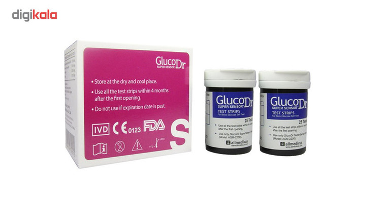 نوار تست قند خون گلوکو داکتر Gluco Dr محصولی بهداشتی- طبی ساخت کشور کره است که امکان اندازه گیری قند خون شما را در کمترین زمان و به راحتی فراهم می آورد. این مجموعه یک پکیج 50 عددی نوار تست قند خون می باشد که در دو قوطی درب دار 25 تایی مجزا ارائه شده اند تا در برابر رطوبت، دما و آلودگی های احتمالی محفوظ باشند. این نوارها برای استفاده شخصی و به صورت یکبار مصرف هستند و دارای الکترودهایی با روکش طلا می باشند تا در هر شرایط محیطی نتایج معتبری به شما ارائه دهند. دمای مناسب برای نگهداری از این محصول از 1 تا 32 درجه سانتی گراد می باشد. میزان حجم خون مورد نیاز برای اندازه گیری در حدود 2 میکرو لیتر می باشد و زمان عملکرد آن نیز تقریباً 10 ثانیه است.